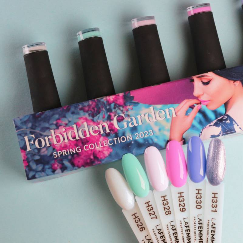 Kolekcja Forbidden Garden to tajemniczy ogród, z ukrytymi w nim 6 zmysłowymi kolorami l akierów hybrydowych Ultra HD & Hema Free Non Stop Color™ . Fantazja tych, którzy odważą się tam wejść, przeprowadzi Was przez aleje wiosennych barw, które sprawią, że na pewno się na nie skusisz! La Femme otwiera przed Tobą szeroko bramy labiryntu kolorów, w którym możesz łatwo się zgubić zauroczona jego bogactwami! Czas przywołać wiosnę kolorami!