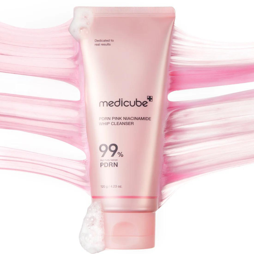 Medicube PDRN Pink Niacinamide Whip Cleanser wzbogacony jest PDRN, znanym ze swoich właściwości regenerujących, oraz niacynamidem, które skutecznie usuwają zanieczyszczenia i nadmiar sebum, nie podrażniając skóry. Pomaga rozjaśnić i ujednolicić koloryt skóry, jednocześnie nawilżając i wzmacniając barierę ochronną skóry. Idealny do codziennego stosowania, pozostawia skórę czystą, odświeżoną i naturalnie promienną. Lepka konsystencja pomaga wchłaniać zanieczyszczenia bezpośrednio z porów!