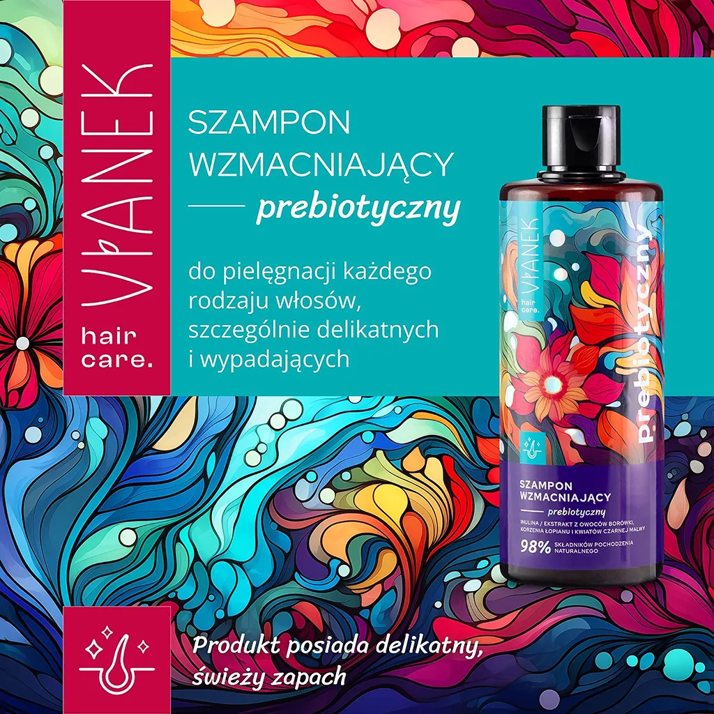 - Prebiotyczny szampon do wypadających włosów - odkryj moc natury w walce o silne i zdrowe włosy dzięki prebiotycznemu szamponowi wzmacniającemu. Stworzony z myślą o potrzebach każdego rodzaju włosów, szczególnie delikatnych i skłonnych do wypadania.